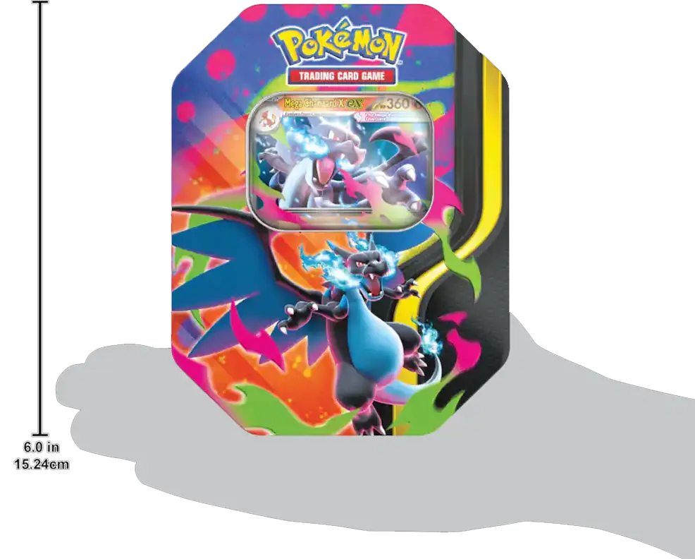 Under the right conditions-including a strong bond with its Trainer-Charizard can surpass its own limits and Mega Evolve! With this tin, you can choose the raging blue flames of Mega Charizard X ex or the aerial agility of Mega Charizard Y ex, then find more Pokemon inside a handful of booster packs..