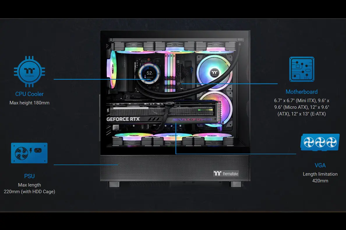 THERMALTAKE View 270TG Mid Tower Two Panel Front & Left Side Tempered Glass PC Case - BLACK X Features