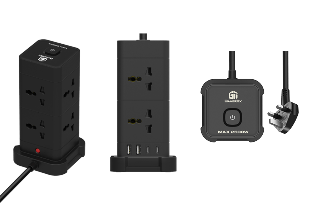 GamerTek Surge Protector Power Extension 2500W - Black X Features