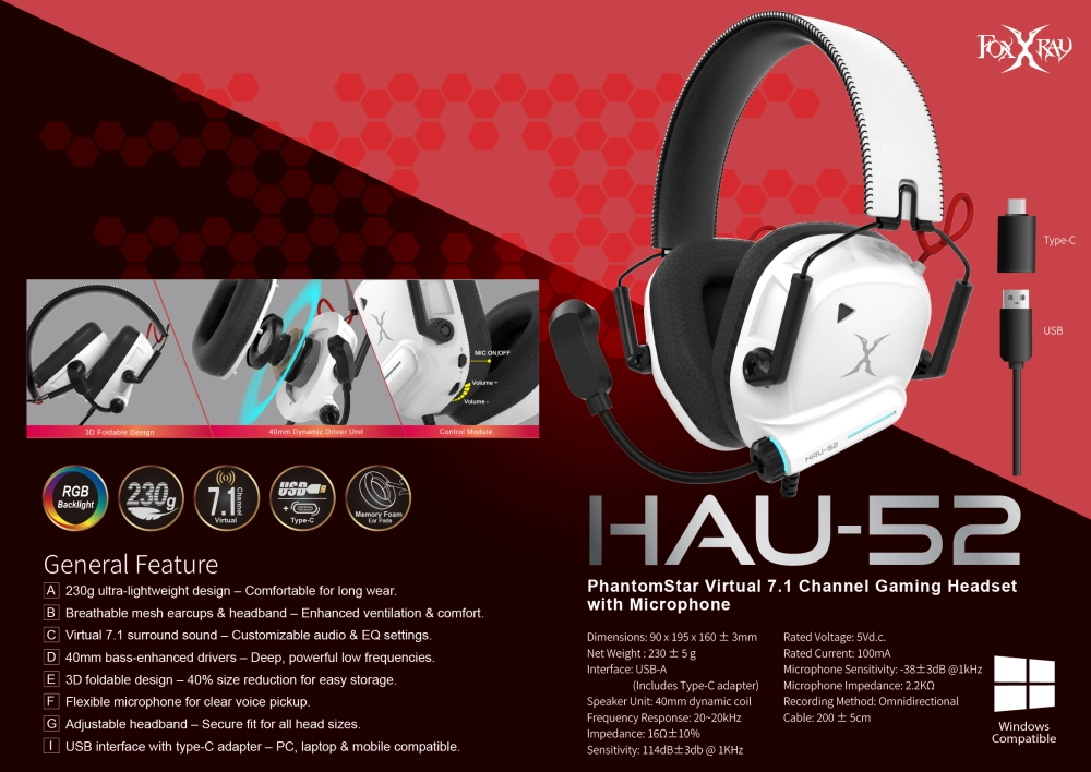 | 230g ultra-lightweight design – Comfortable for long wear |