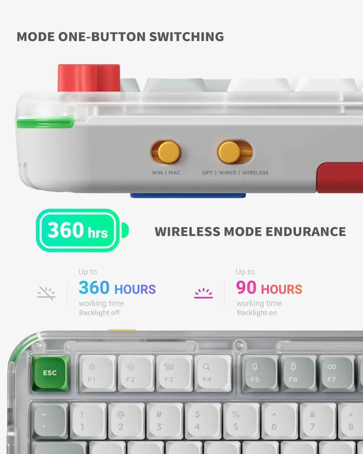 • Seamless Connectivity Across Devices: Stay connected and productive with the Kick75's versatile tri-mode connectivity. Effortlessly switch between 2.4GHz wireless, Bluetooth 5.1, and USB-C wired connections, ensuring compatibility with a wide range of devices, including PCs, laptops, tablets, and smartphones.